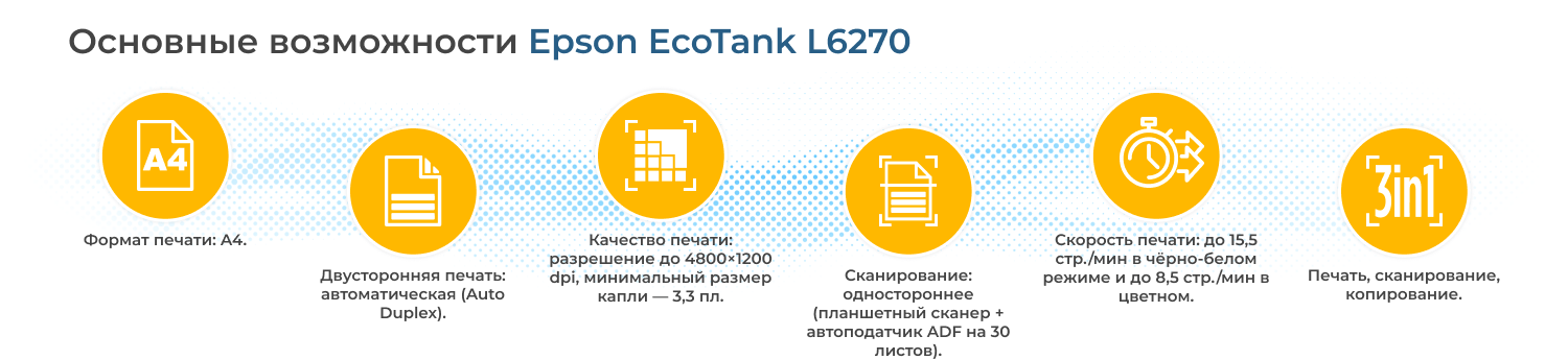 Заказывайте Epson L6270 и получите профессиональный офисный МФУ с максимальной производительностью и минимальными затратами на печать!