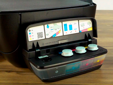 Система для беспрерывной подачи чернил представлена в виде отдельного блока, который находится снаружи устройства. Благодаря такой конструкции заправлять HP Ink Tank 115 чернилами можно даже во время печати. Контейнеры прозрачные, поэтому вы сможете отследить уровень расходников.