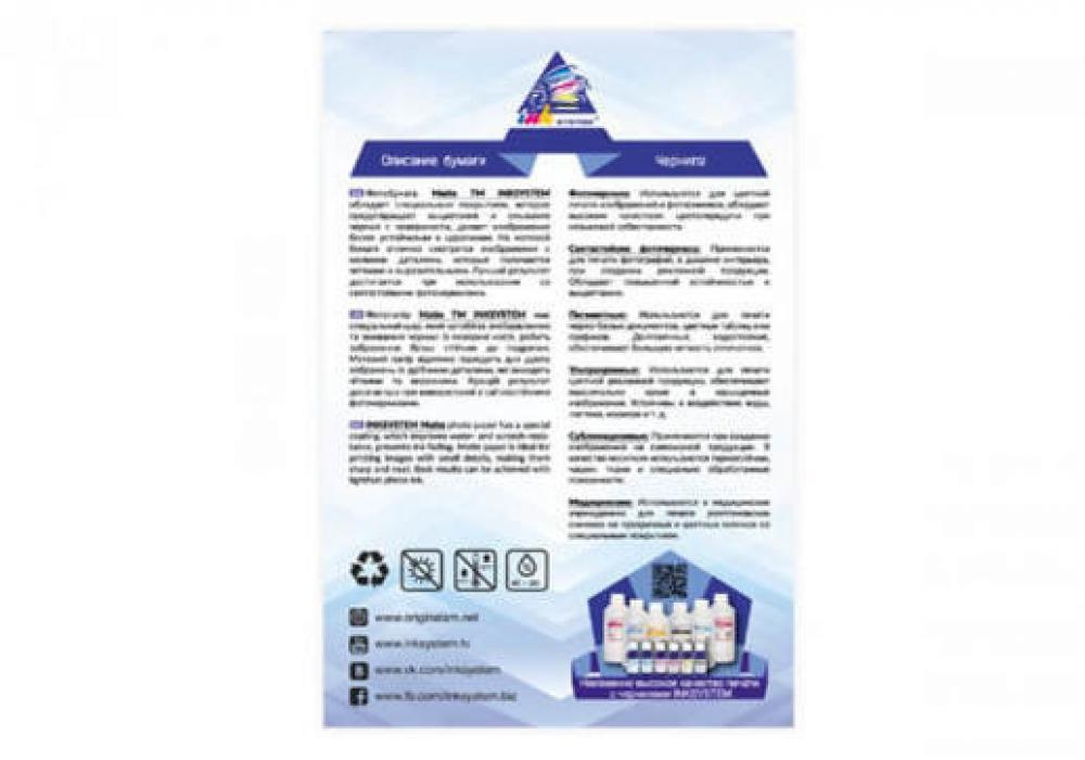 Матовий фотопапір INKSYSTEM 180g, 10x15, 100л. для друку на Epson L1455