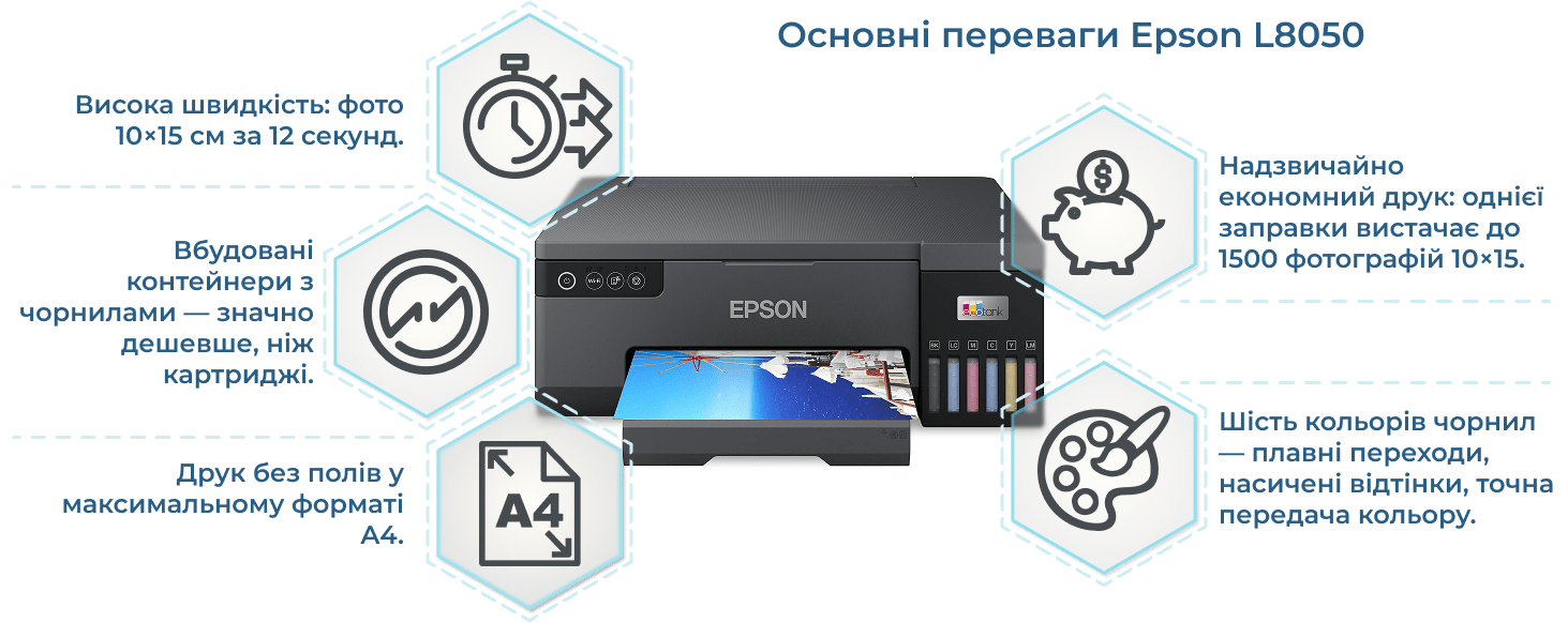 Принтер Epson L8050 з оригінальною СБПЧ та чорнилом